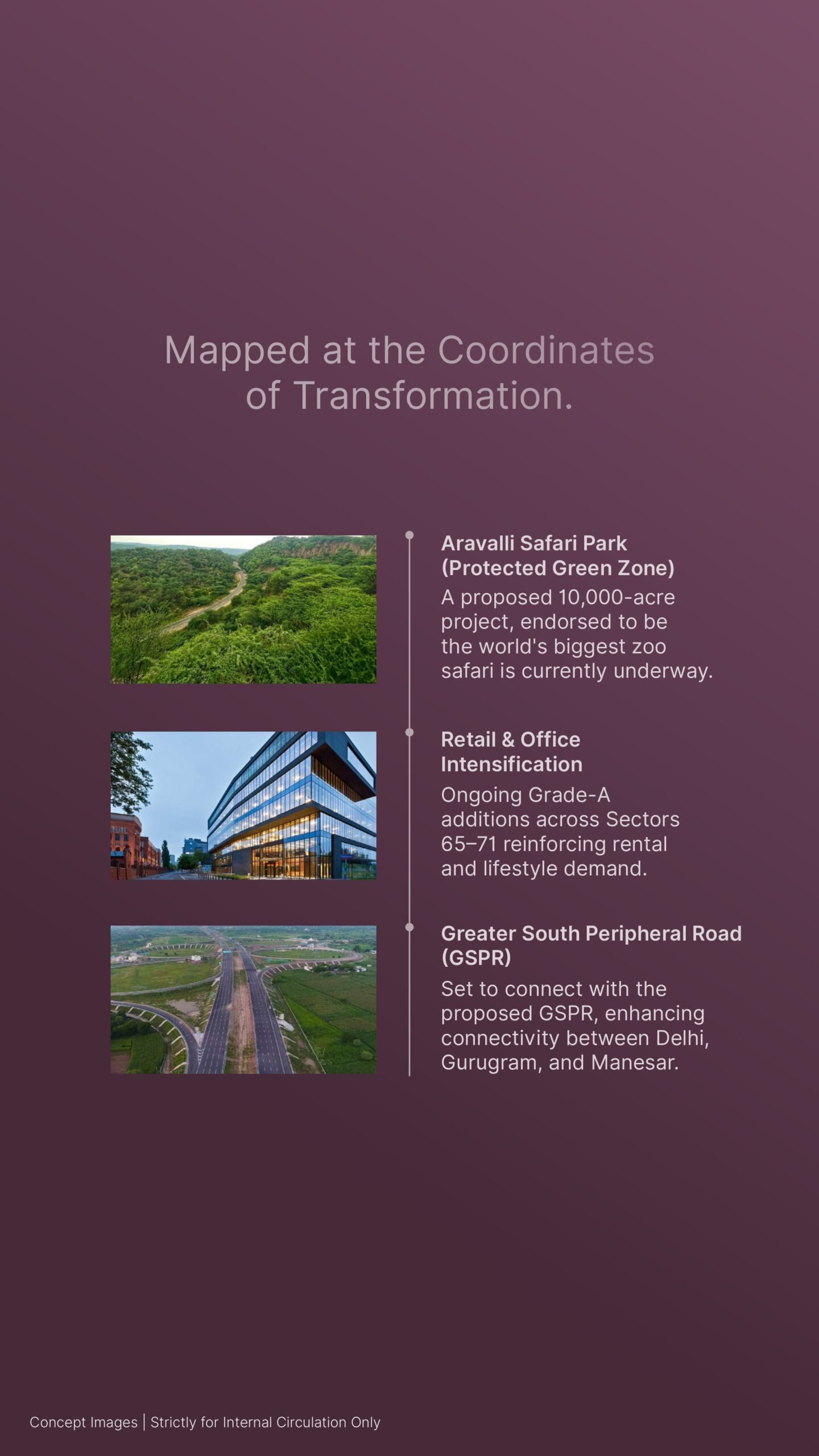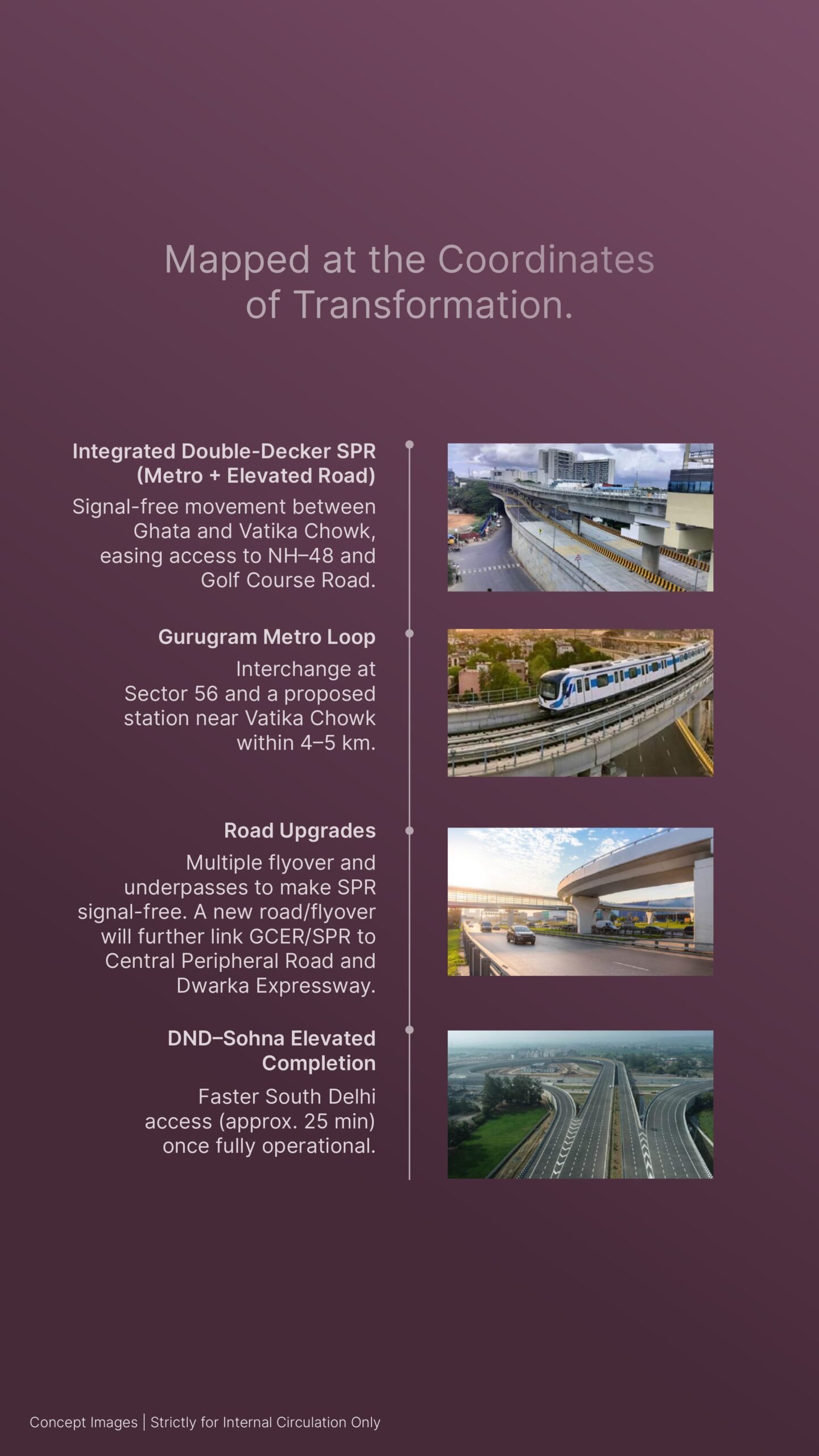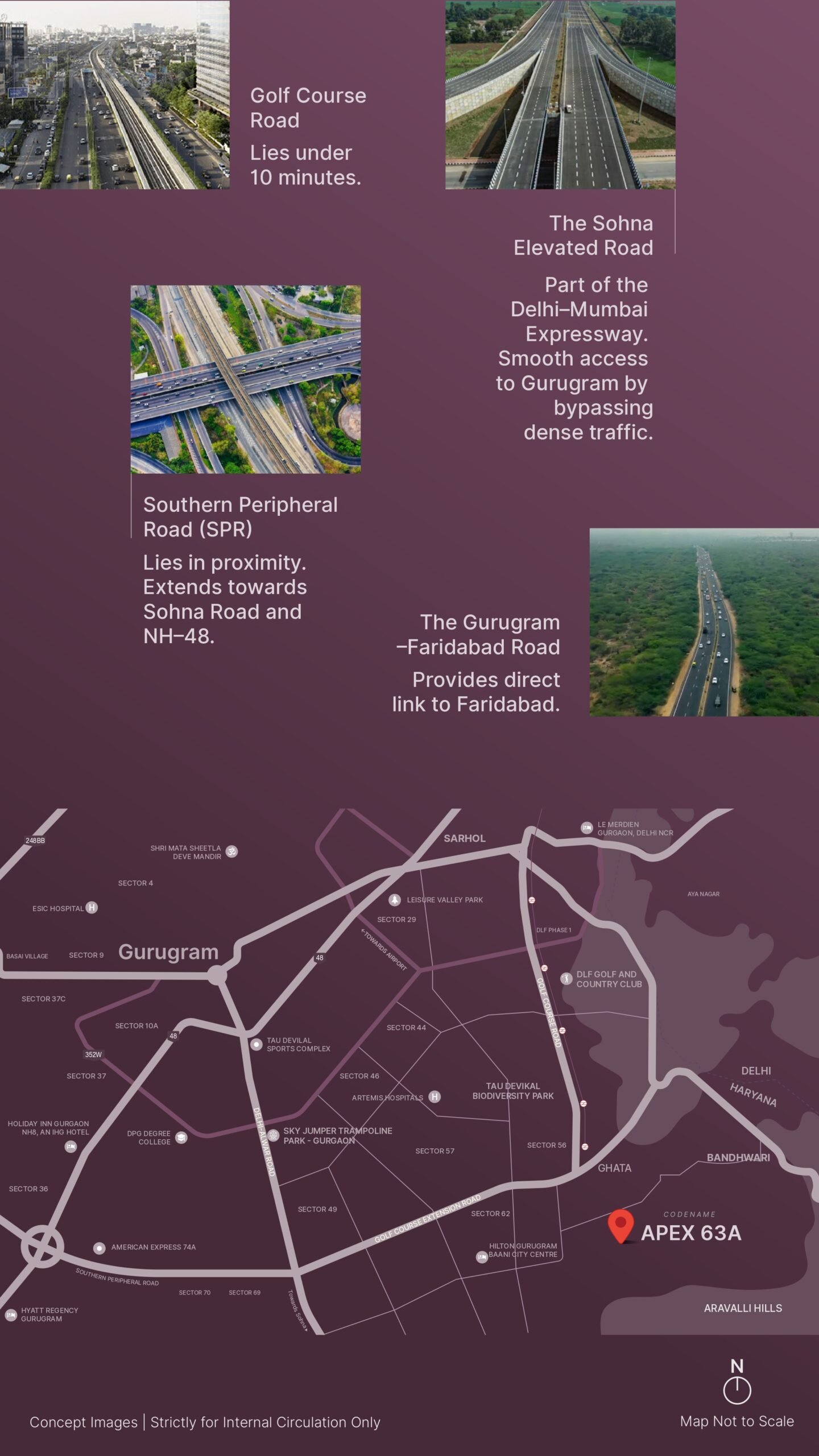 • Arterial Access: Direct access to the Southern Peripheral Road (SPR), Sohna Elevated Road, and the Delhi-Mumbai Expressway.