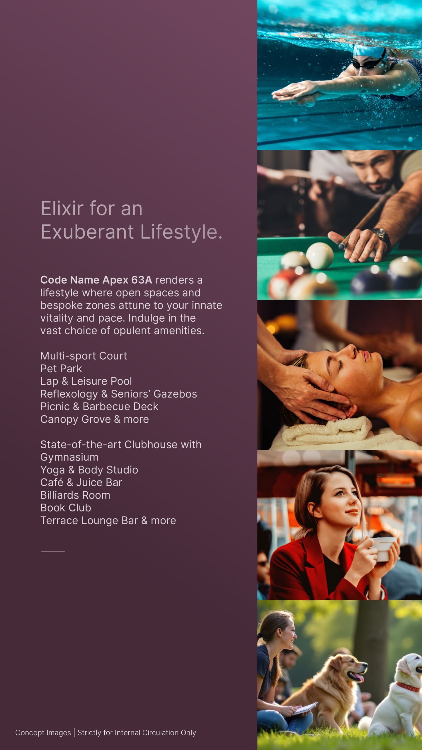 • Outdoor Spaces: Lap and leisure pool, multi-sport court, pet park, reflexology zones, and seniors’ gazebos.