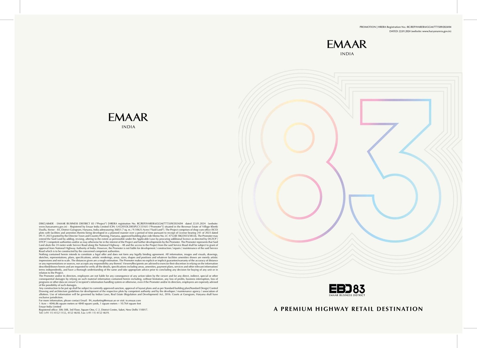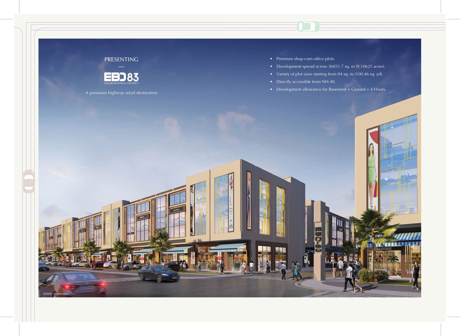 Indian highway retail is accelerating into a new lane. Beyond the pit stop, there is a craving for new shopping experiences. NH-8 one of the major grade A highway witness an inflow of 80,000 cars per day and turned out to be a preferred halt for people to stop by, eat and shop. Emaar India introduces EBD 83 (Emaar Business District) Premium highway retail near NH-8 with New Gurgaon as a secondary catchment. The EBD 83 is the best investment opportunity for highway retail space on NH8.