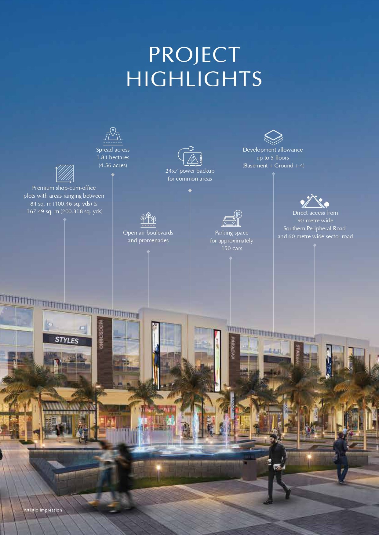 The project offers a variety of plot sizes to meet different investment objectives: