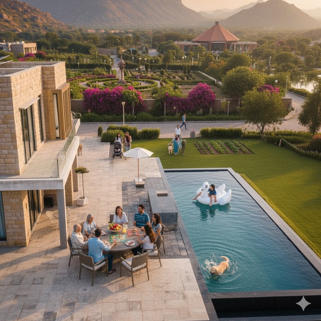 Lifestyle: High demand for second homes/weekend retreats (post-pandemic) because of the need to be part a larger area with plenty of open spaces, unpolluted air, and tranquility close to Aravalli Hills.