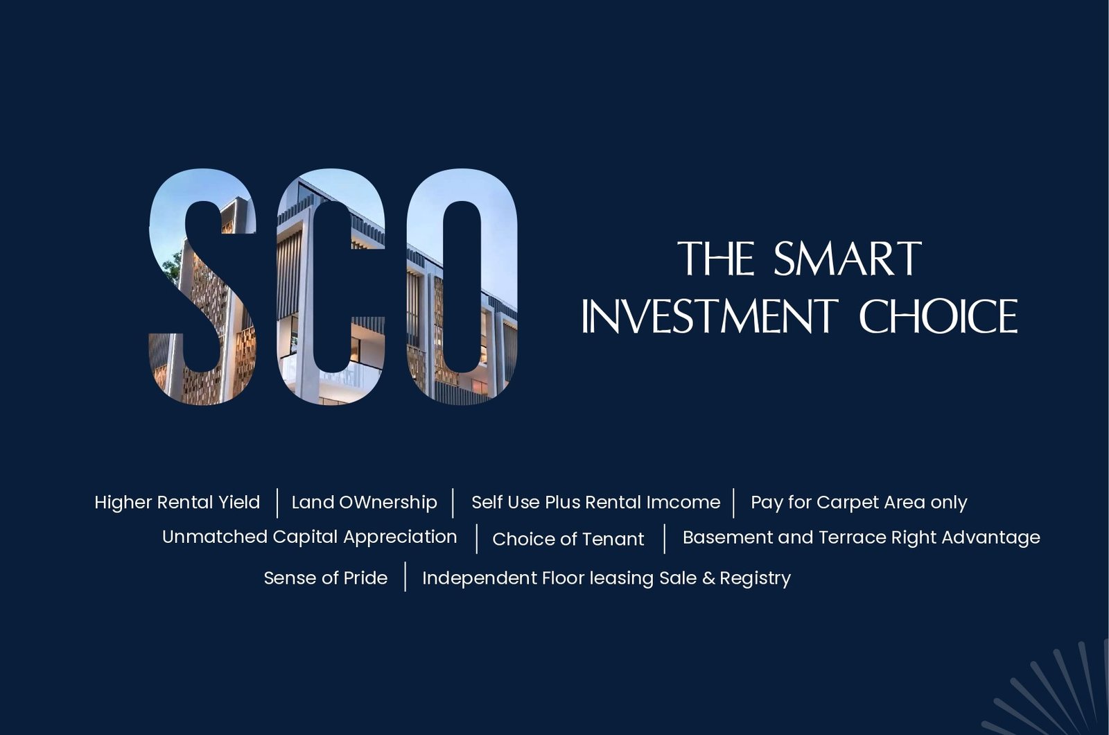 Why should I invest in an SCO plot versus a mall shop? SCO plots offer higher flexibility, lower maintenance fees, and the prestige of owning the land. They provide excellent visibility for “High Street” retail, which is currently in high demand compared to traditional enclosed malls.