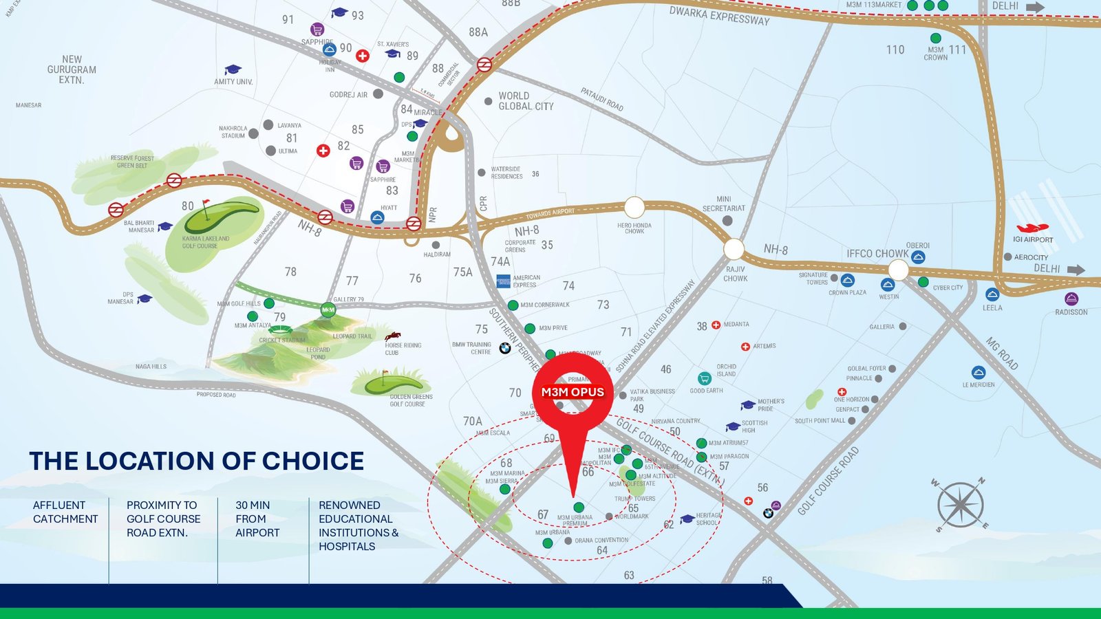 M3M Opus Sector 67 Gurgaon Key Location Advantages – Golf Course Extension Road, Gurgaon