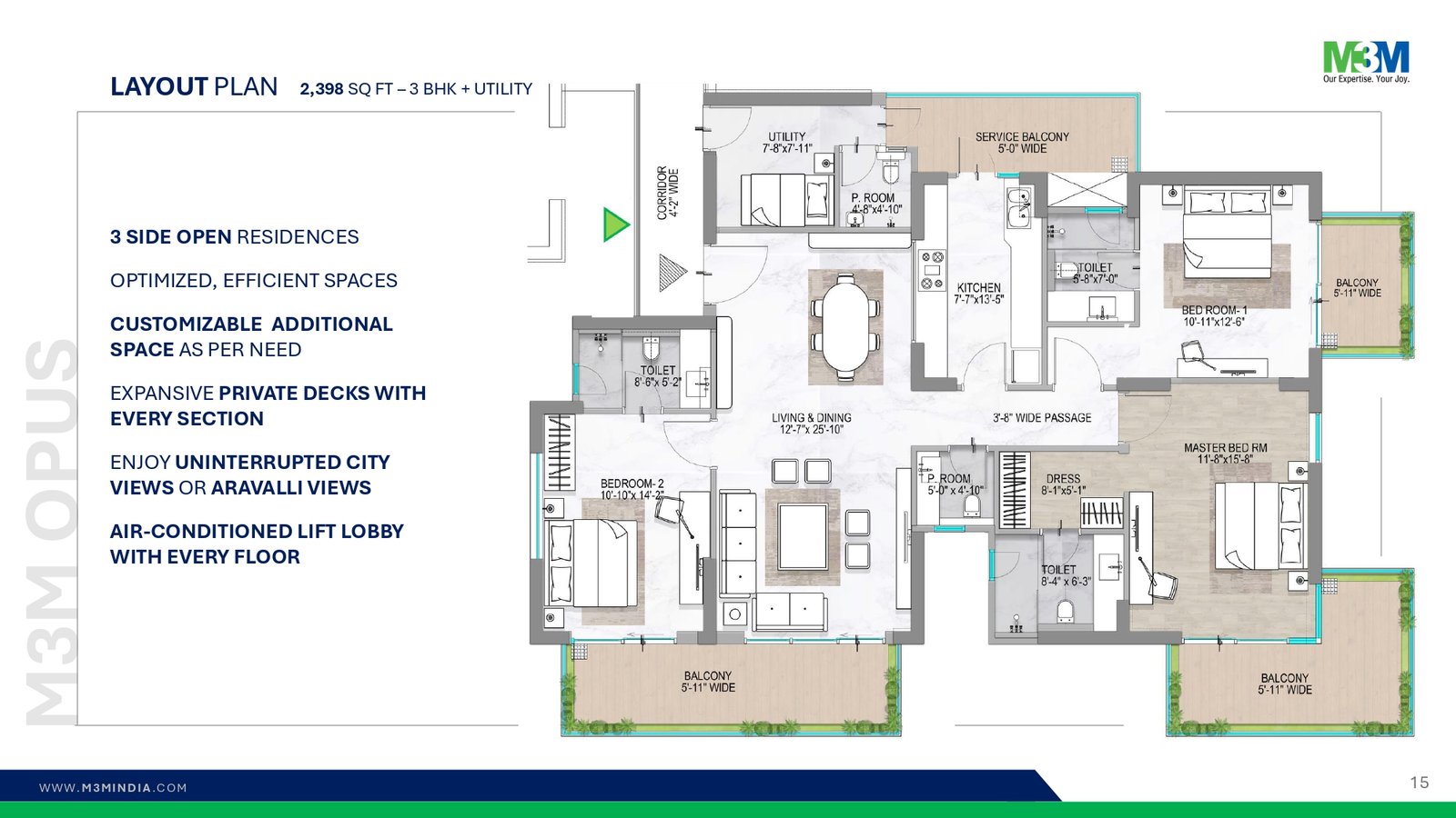 3 BHK +Utility flats in this apartment is luxuriously spacious (2398 Sq. ft.)