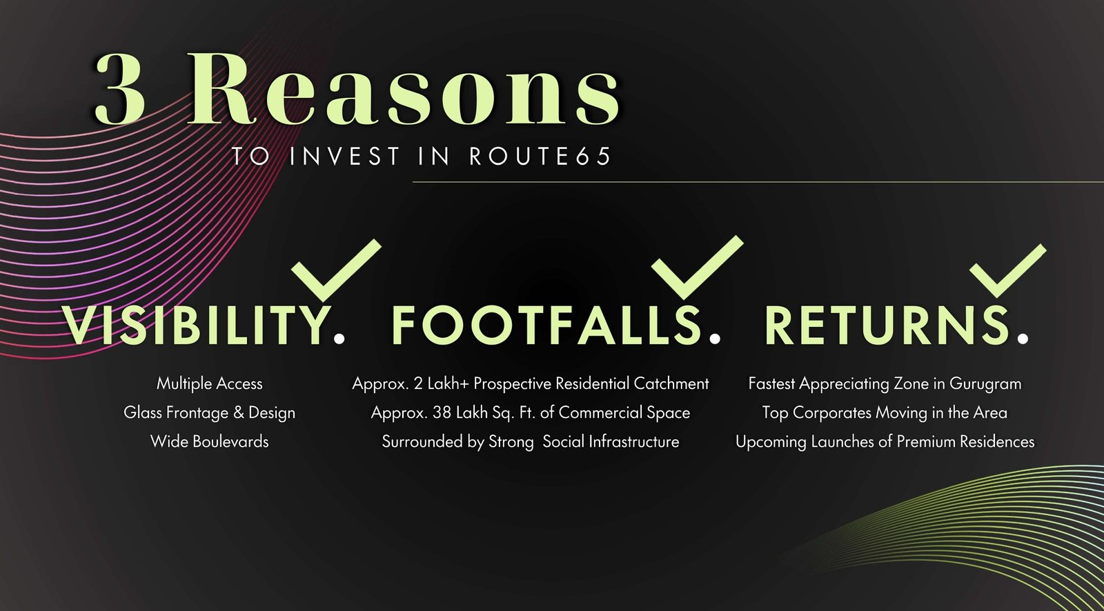 M3M Route 65 – the convergence point for famous and fashionable food, shopping, lifestyle and entertainment from around the world. It is located in Sector 65 with a spread of built-up area of approx. 4 acres, serving as the perfect blend of retail shop, food courts & open dining area on upper ground floor. It has a modern approach and glass fronts which offers a unique shopping experience. Conditioned piazzas, colorful courtyards, and the central atrium all work together to define a rich world inside the building. M3M Route 652Located amidst premier lifestyles and global workspaces, M3M Route 65 has an interplay of transition & liveliness.