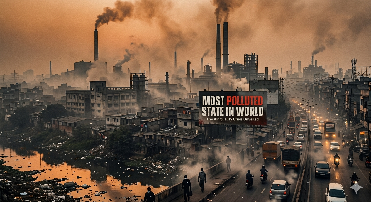 Most polluted state in World : The last 2025/2026 World Air Quality Report (last updated late March 2026) suggests the pollution index measured by $PM_{2.5}$ (fine particulate matter).