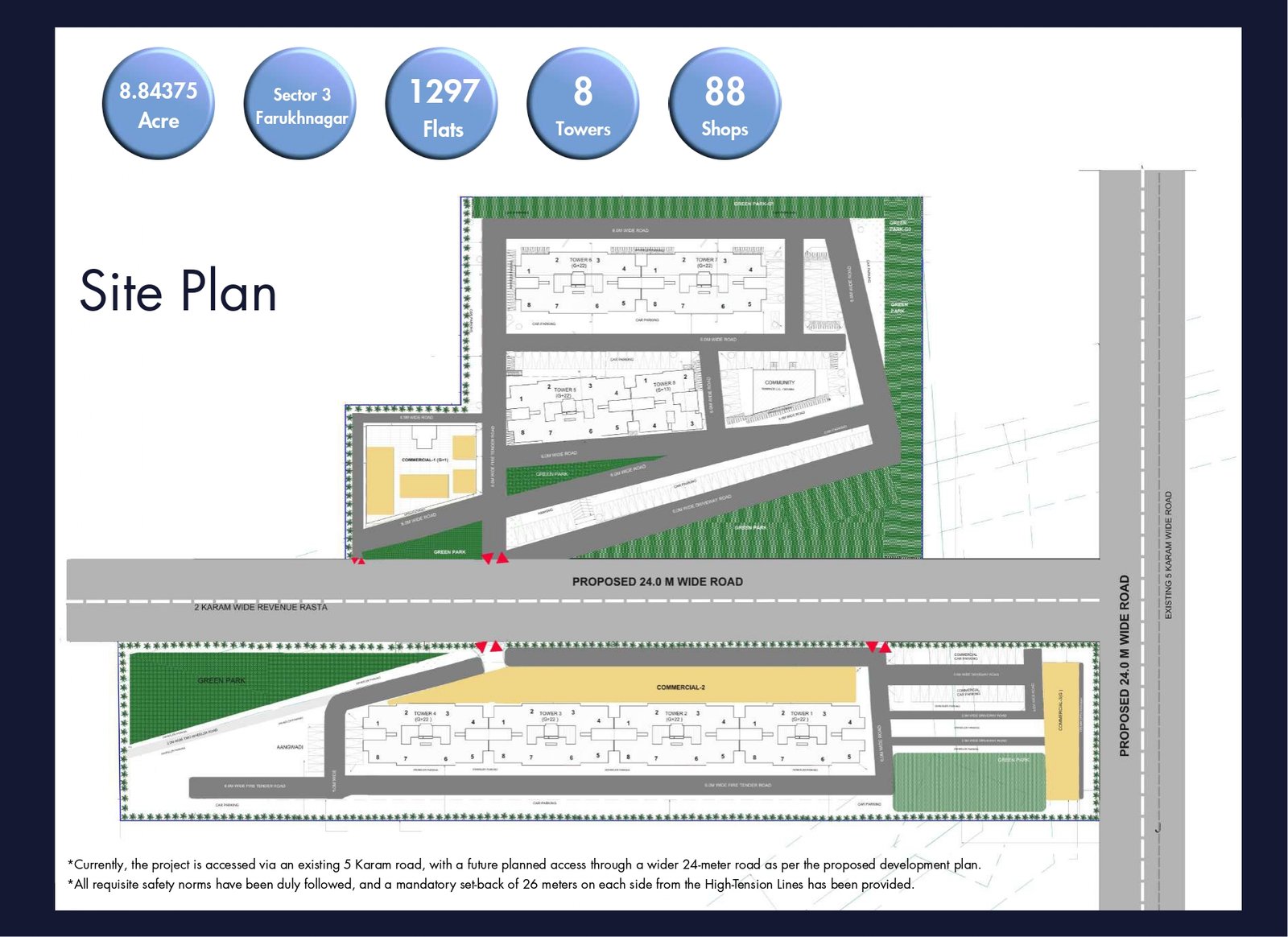 • The site includes a mandatory 26-meter setback from high-tension lines for safety.