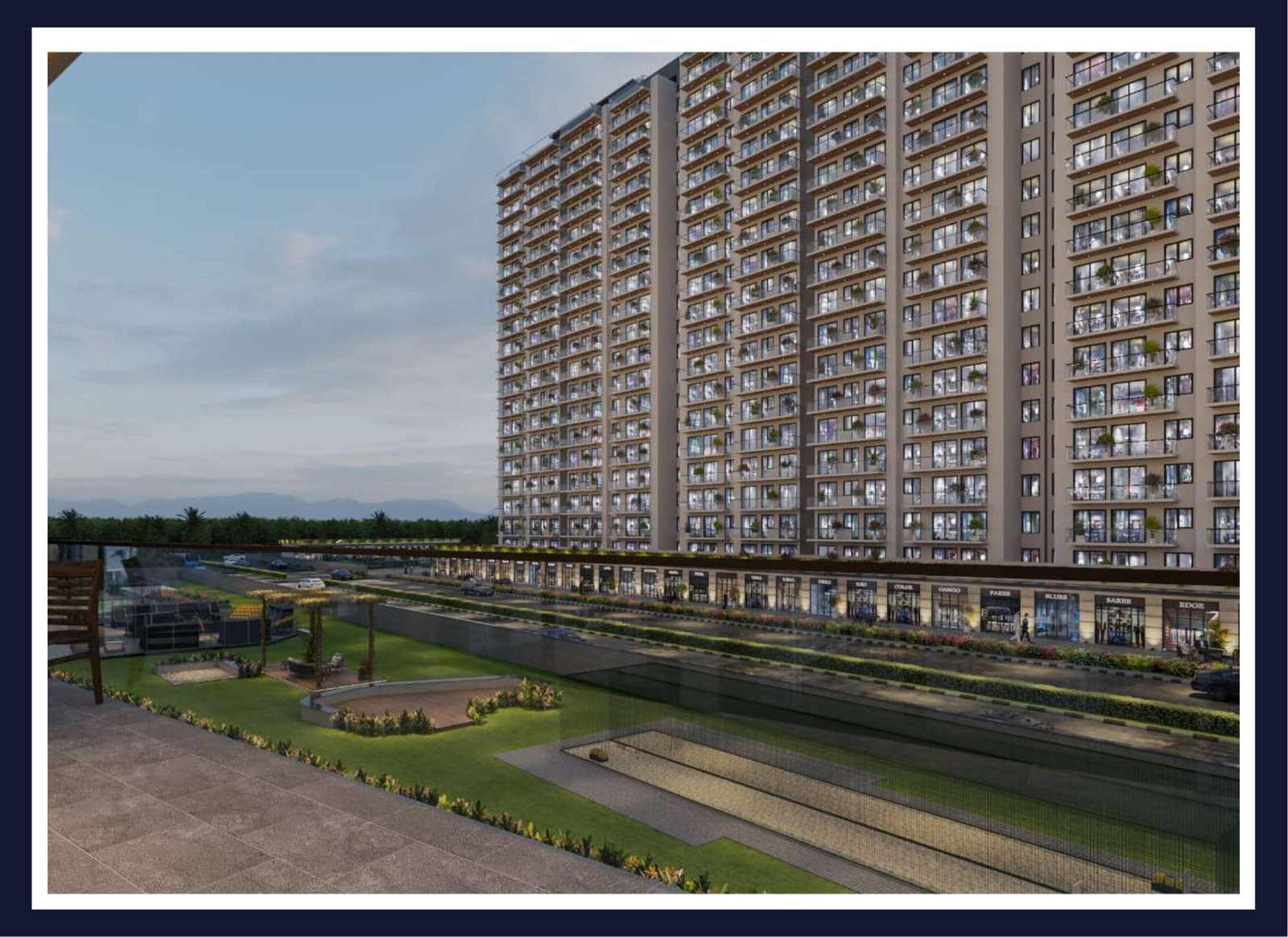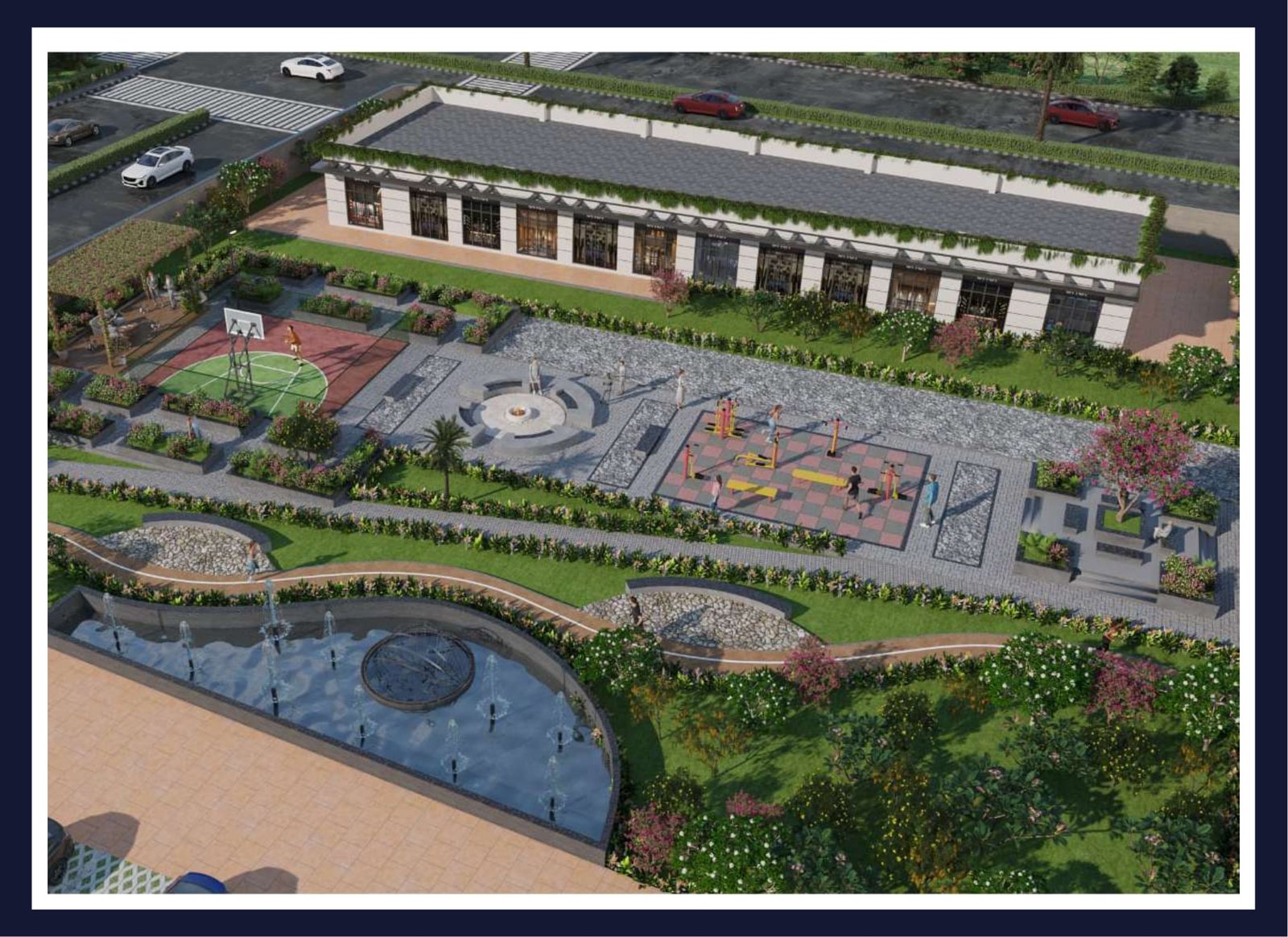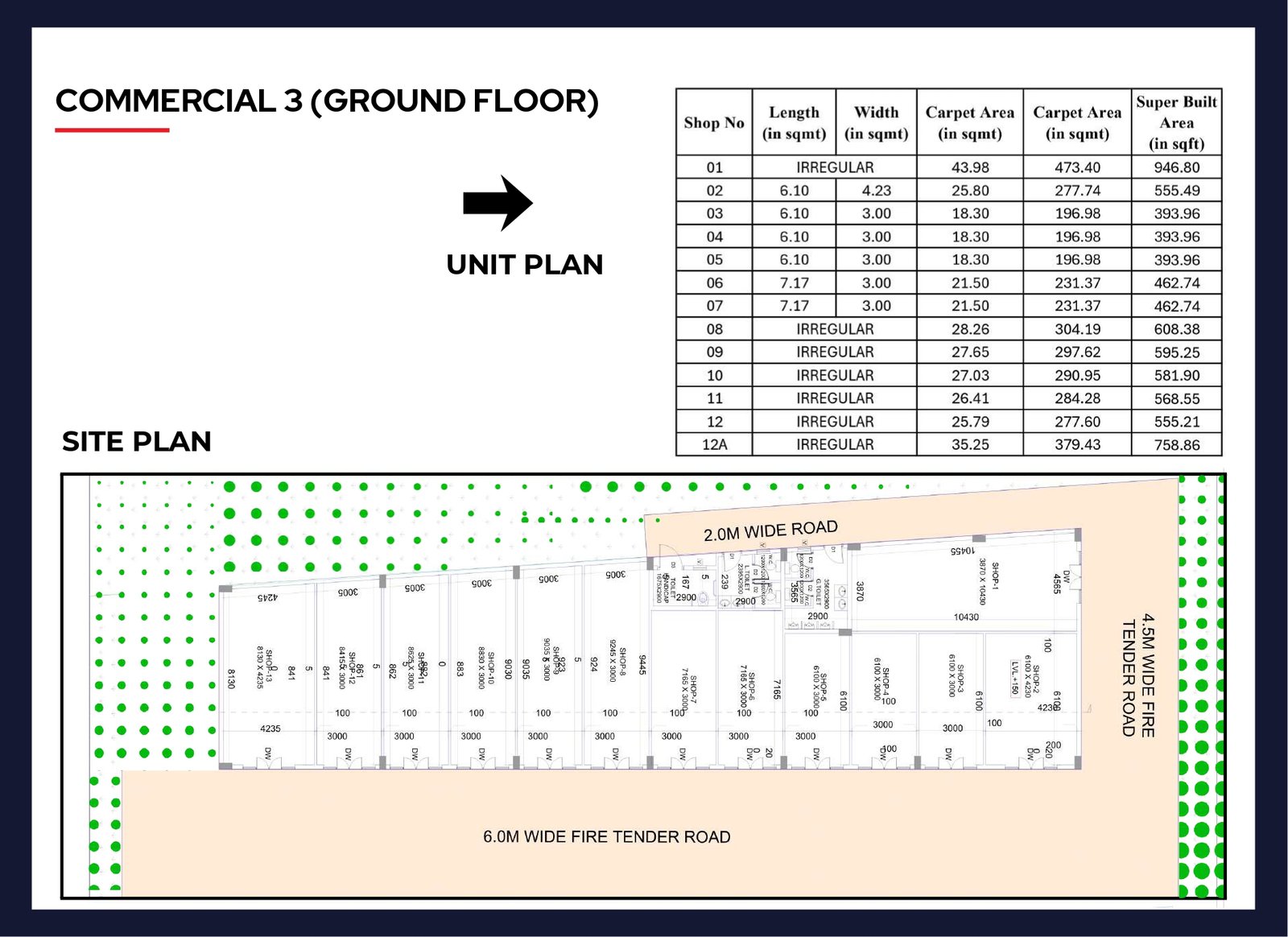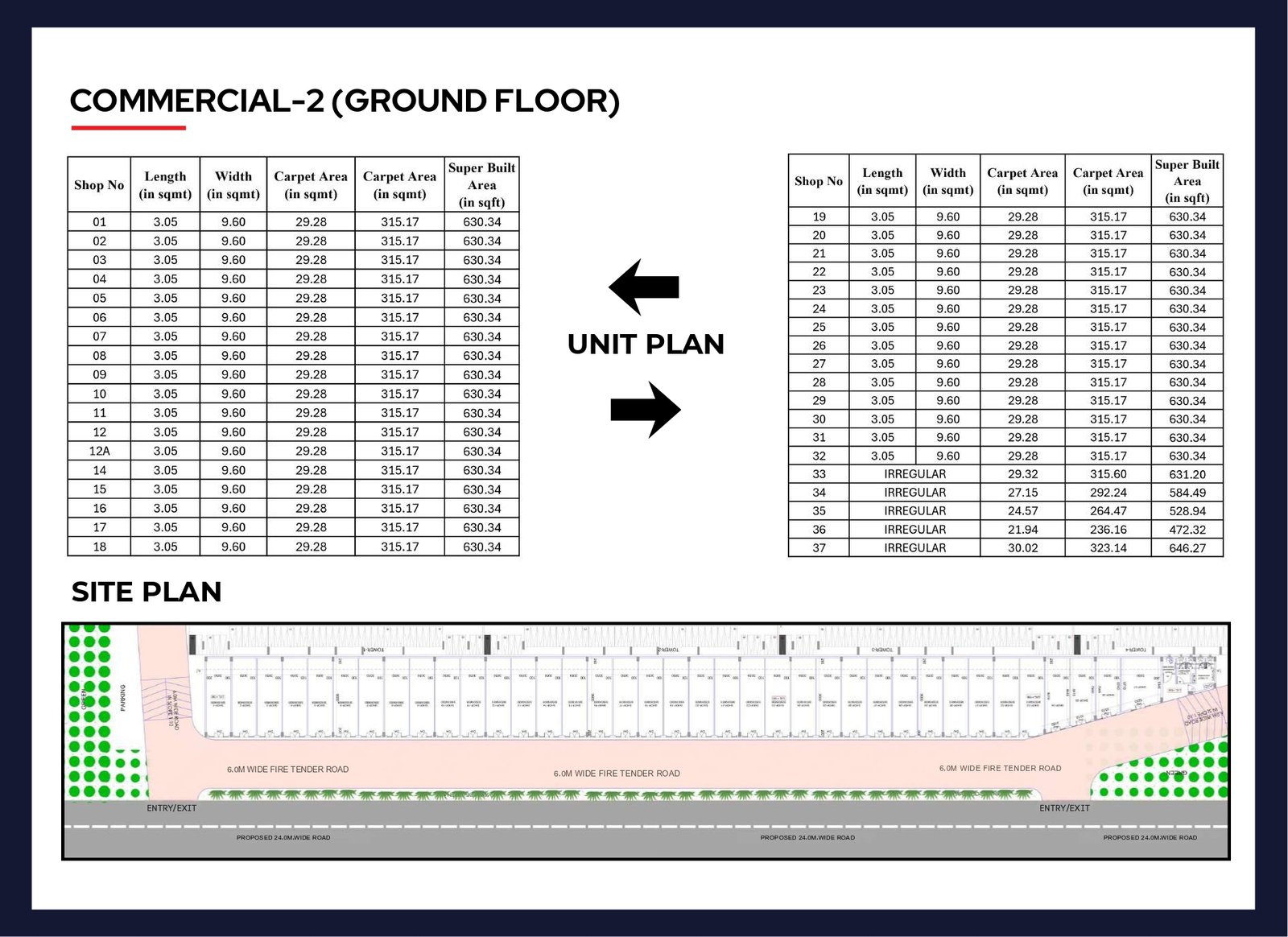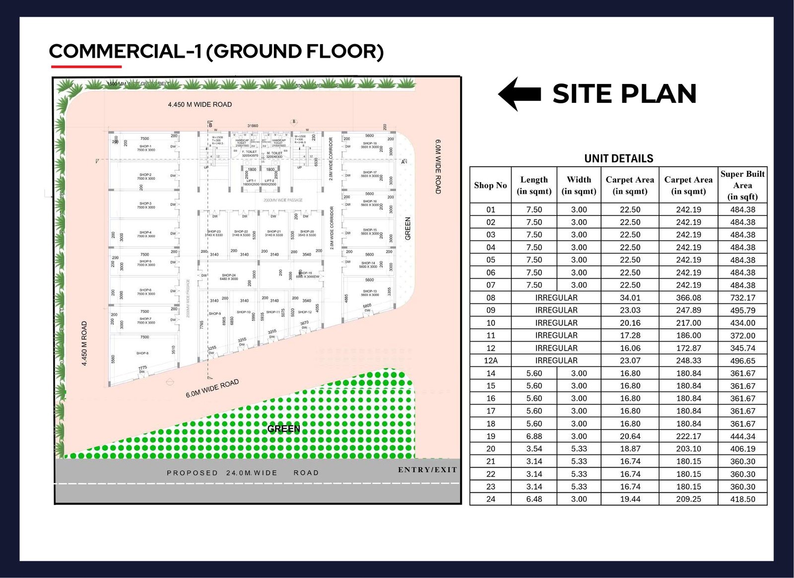 • Road Frontage: Shops face a 24-meter wide road, ensuring high visibility.