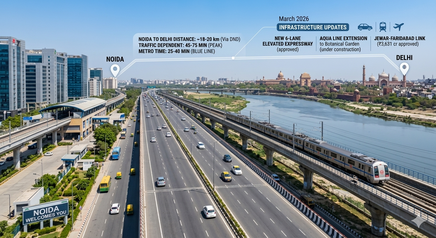 What is the fastest way to get to Delhi from Noida? The DND Flyway remains the fastest road link (~18–20 km), taking 25–40 minutes in normal traffic. It has been confirmed as permanently toll-free since May 2025.
