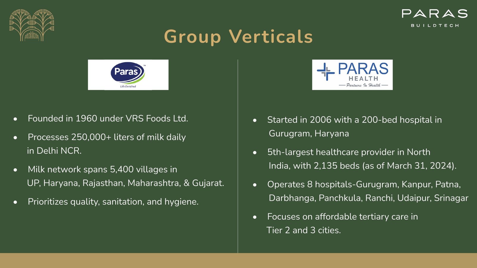 Diversified Success: The developer is part of a larger ecosystem that includes Paras Health, the 5th largest healthcare provider in North India, and a massive dairy network processing over 250,000 liters of milk daily.