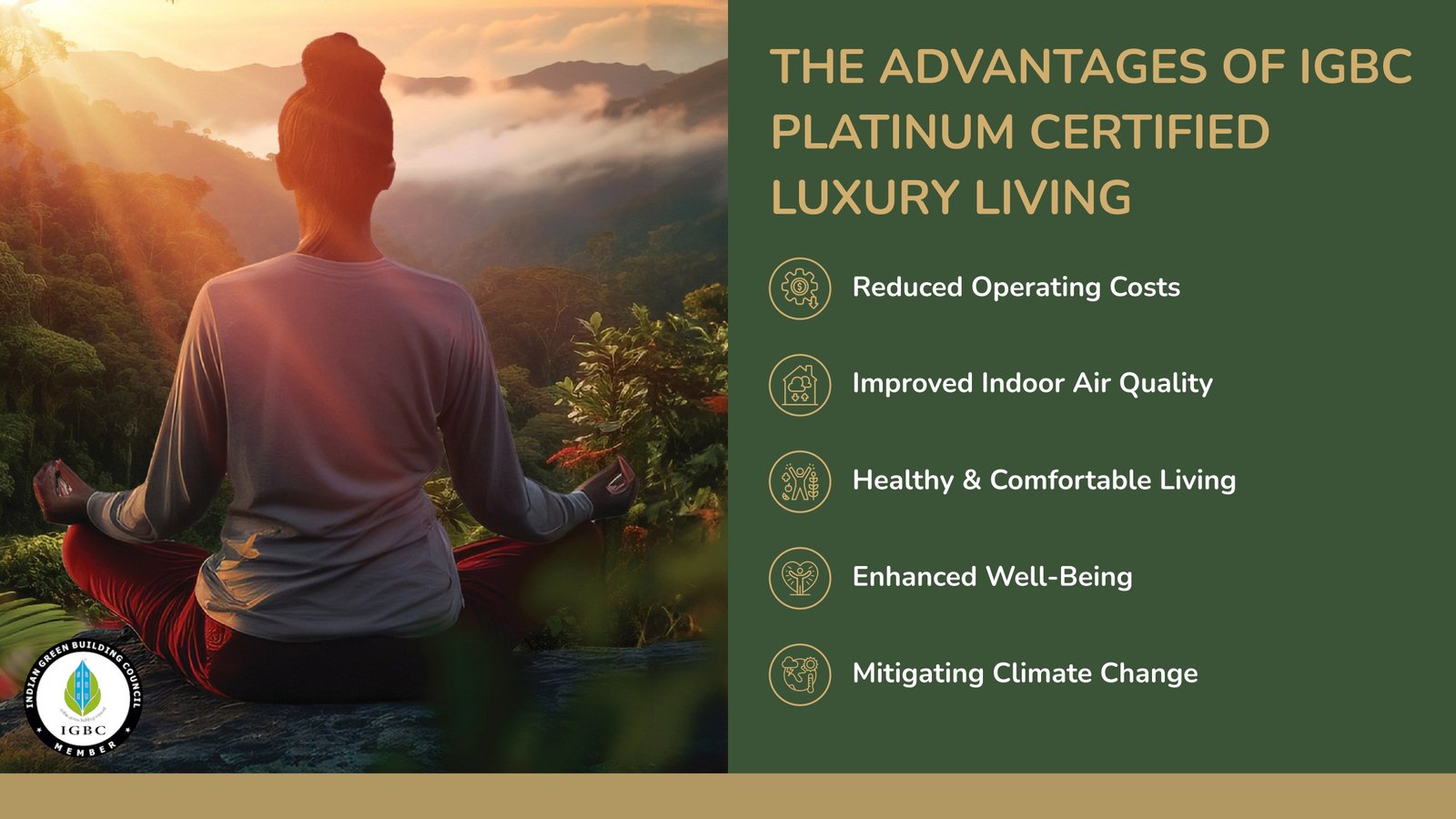 Sustainability: It is an IGBC Platinum-certified project, which is highly rated for energy efficiency and reduced long-term operating costs.