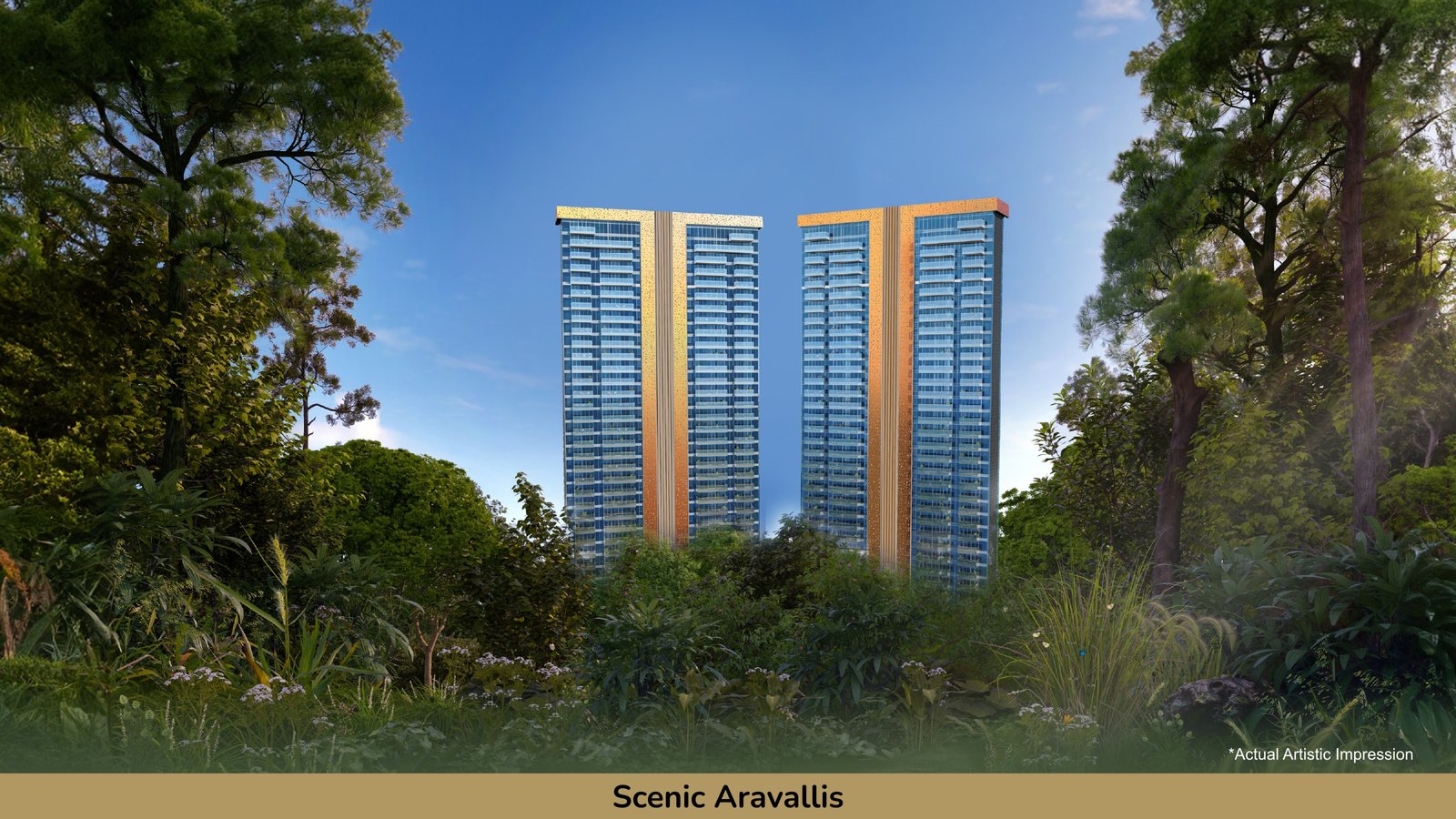 Views: 3-side open apartments with panoramic vistas of the Aravalli hills.