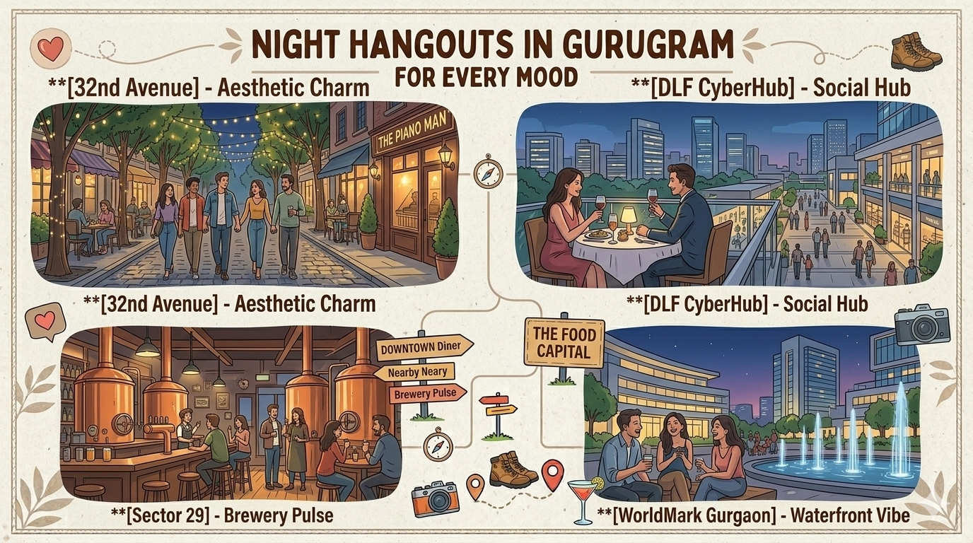 Gurugram is a city that truly comes alive after dark, offering a diverse nightlife that ranges from sophisticated European-style streets to high-energy microbrewery hubs. Whether you are looking for a quiet, aesthetic evening or a vibrant party atmosphere, the city has several distinct zones to explore.