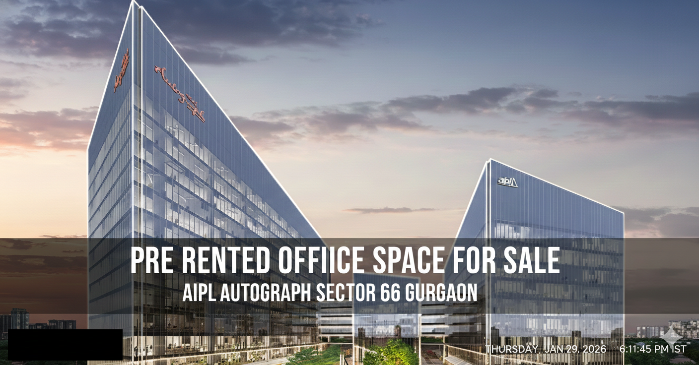Pre rented Office Space For Sale in AIPL Autograph Golf course Extension Road sector 66 ,Gurgaon Invest in Gurgaon’s most sough-after business district for a secured financial future. We have exclusive pre-rented (pre-leased) office spaces available for sale at AIPL Autograph, Sector 66, Golf Course Extension Road.