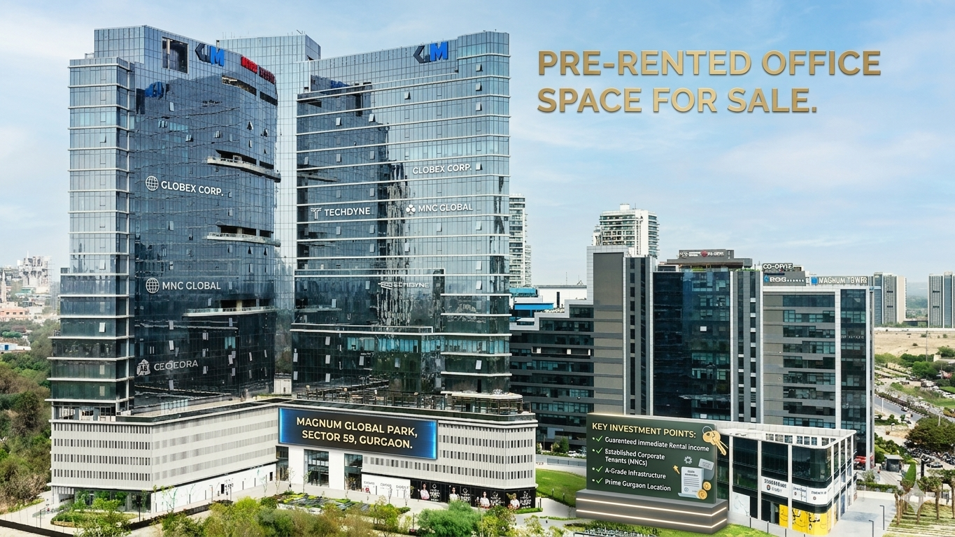 Pre Rented Office Space For Sale in Magnum Global Park sector 59 Gurgaon If you are seeking a high-yield commercial property for sale in Gurugram, consider investing into pre-rented office space at Magnum Global Park, Sector 59, Gurugram (Gurgaon), Haryana. This is a great opportunity for investors looking for steady rental income, strong capital appreciation and premium address in Gurugram’s fast-emerging corporate hub.