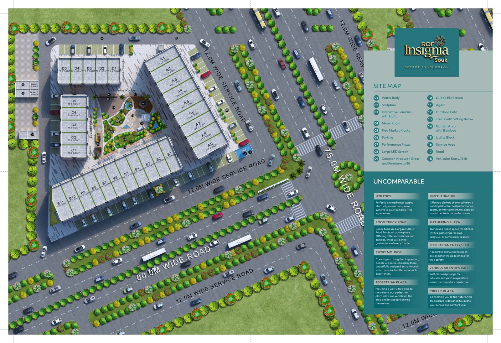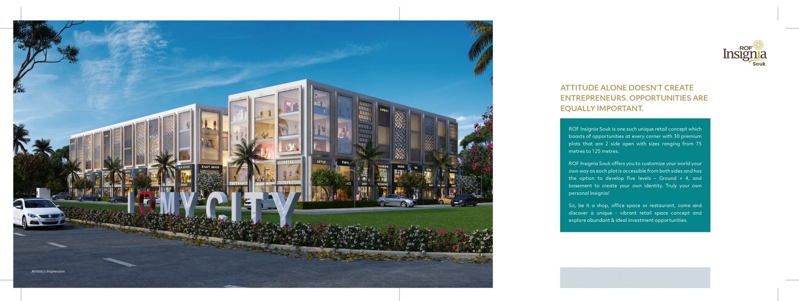 ROF SCO Plots Sector 93 Gurgaon – ROF Insignia Souk are one of such distinctive concept retail wherein giving the business a chance on every adapt 30 elegant locations with 2 side open plots between 75 meters to upper4000. ROF Insignia Souk presents you with an opportunity to shape your world in your style as every plot is open from two sides and allows to develop upto five levels (Ground + 4) including basement making it your identity. Truly your own personal Insignia! So whether you are a shopping outlet, office or restaurant, do not miss this the opportunity to see for yourself – vibrant yet exclusive retail space concept which may be one of the best investment opportunities.
