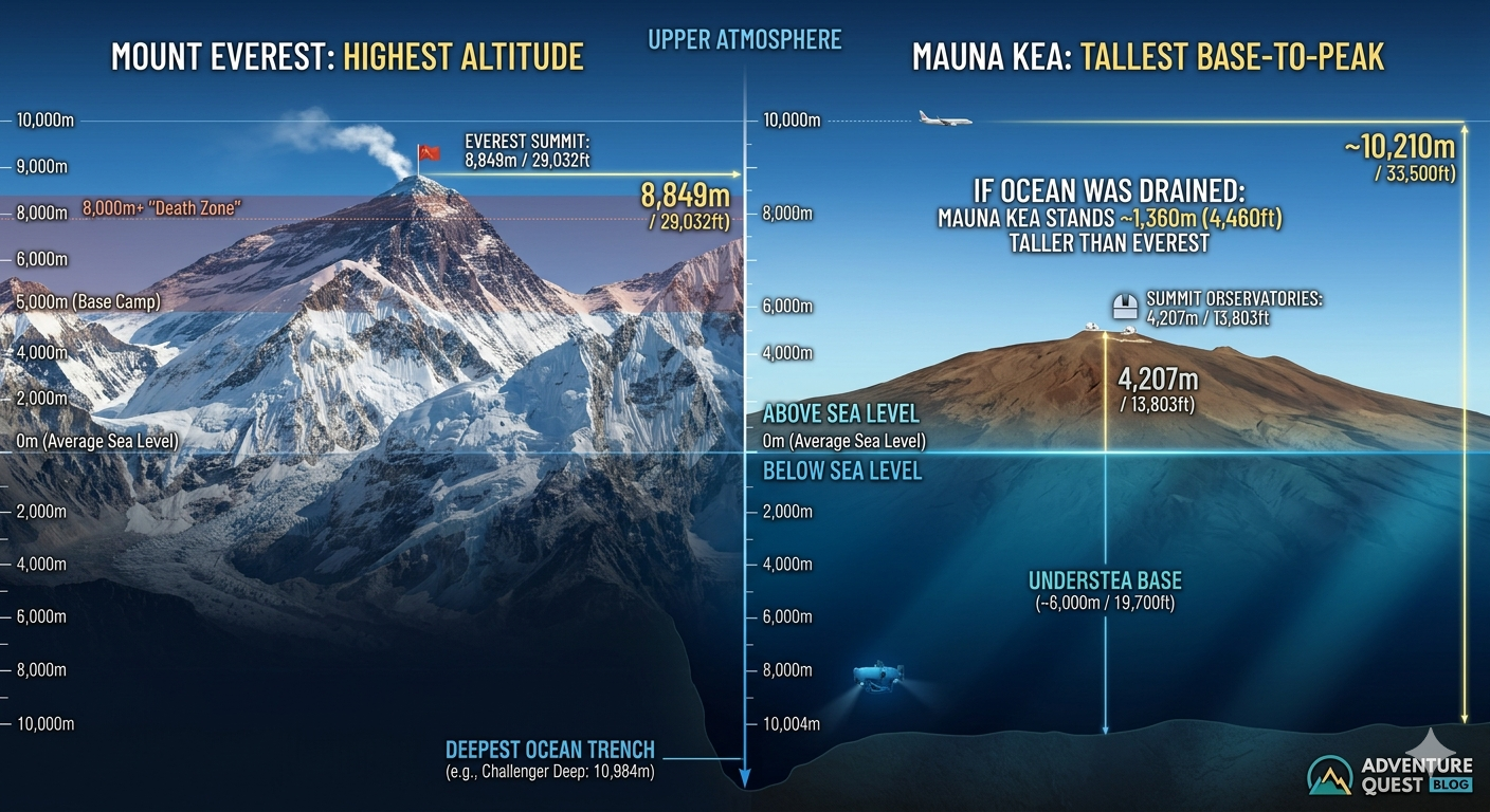 Draining the Pacific Ocean, Mauna Kea would be almost 4,460 feet (1,360 meters) taller than Everest.