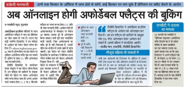 01-07-2021 : The Department of Town and Country Planning, Haryana has developed an online portal to apply for the draw of flats under the Affordable Housing Policy. Now, the prospective buyers can apply for flat allotment on the portal / Haryana affordable housing apply online :- https://edraw.tcpharyana.gov.in/tcp-dms/home