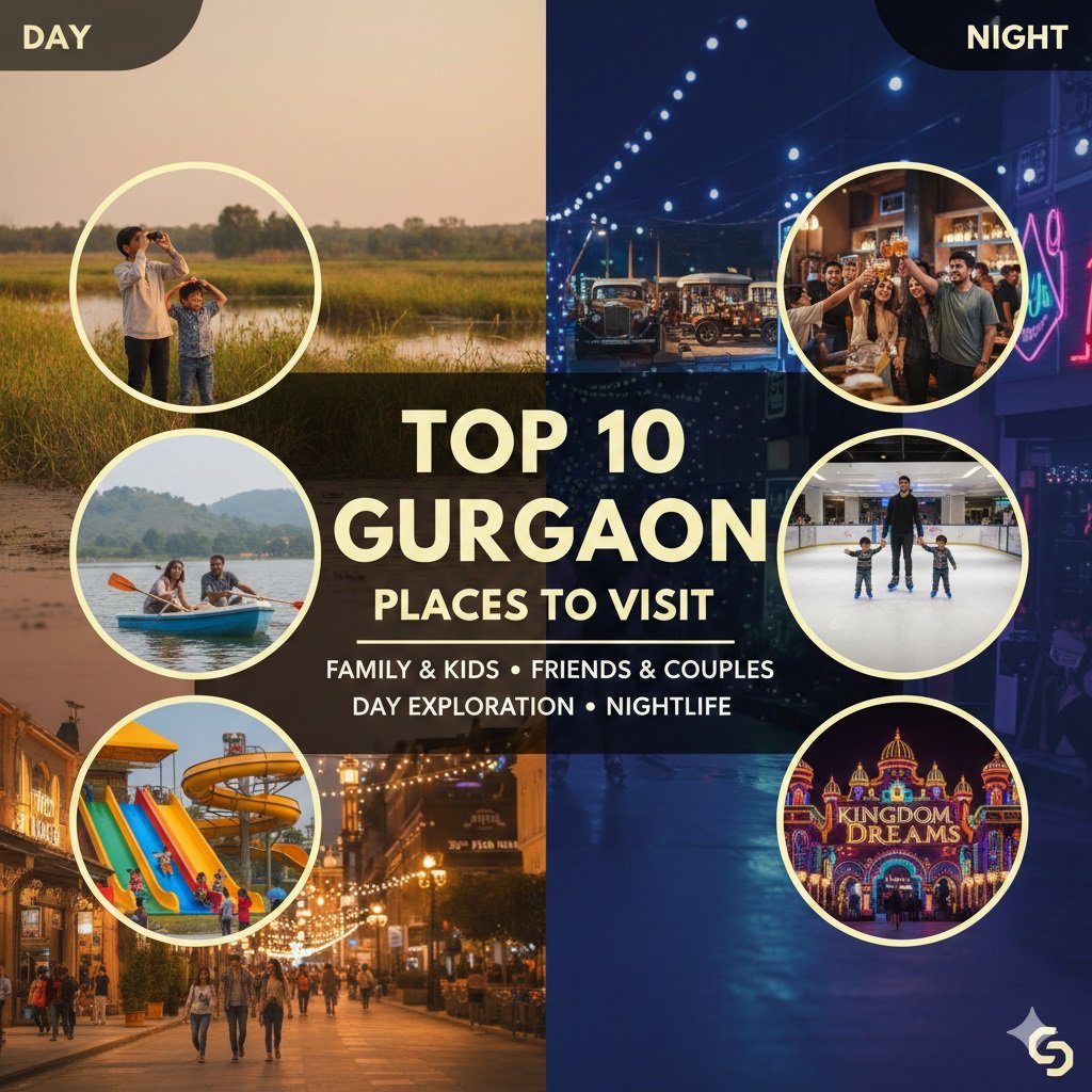 Best Top 10 Gurgaon Places to Visit with family, friends, Kids, couples, day , night : Finding the right spot in Gurgaon depends on whether you’re looking for a peaceful morning in nature or a high-energy night out. Here are 10 top-rated places categorized by the best time to visit and who they are best for.