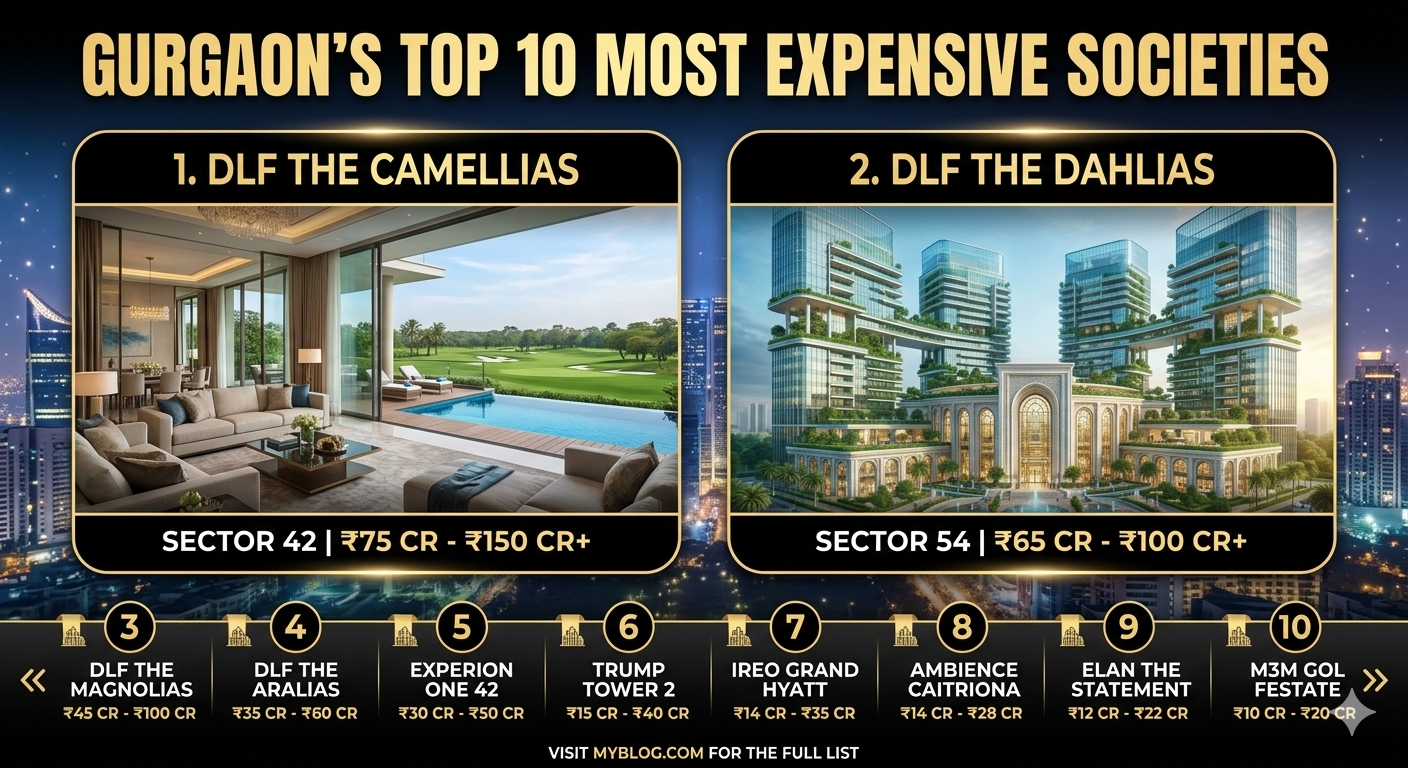 Below are the 10 most expensive and prestigious residential societies in Gurgaon, ranked by their current market valuation and entry-level pricing as of March 2026.