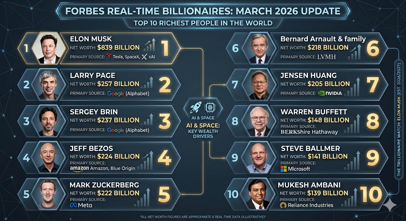 Top 10 Richest People in the World (March 2026)