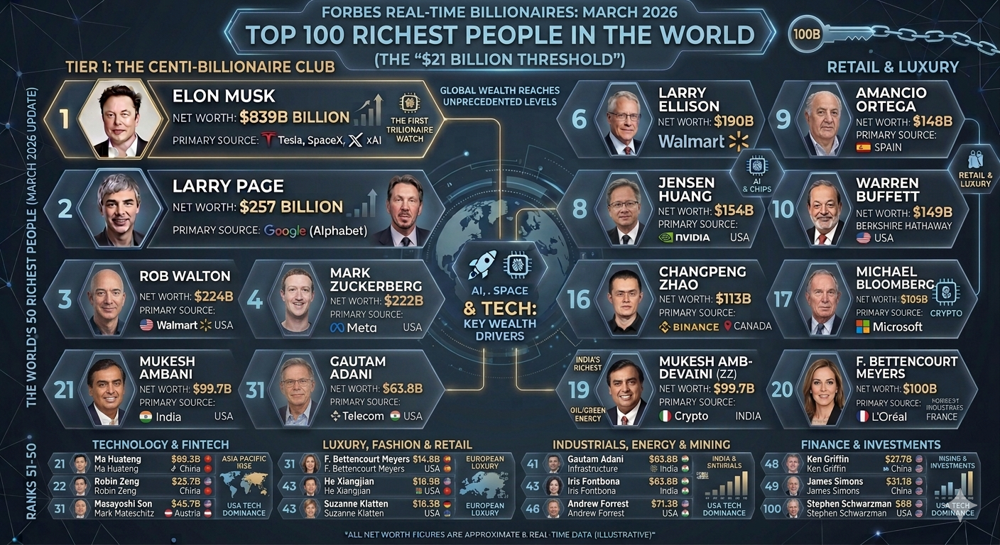 Top 10 Richest People (March 2026)