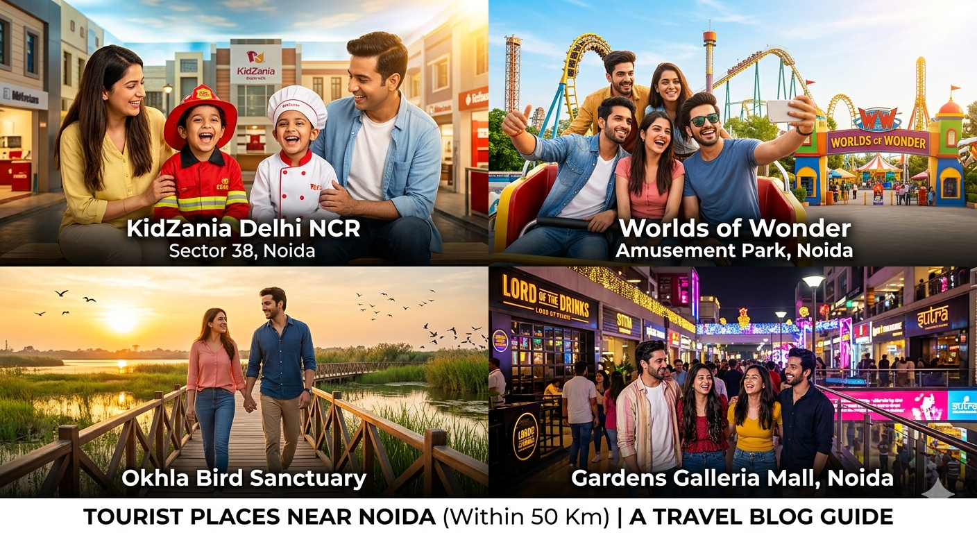 Noida and its surrounding areas within 50 km offer a diverse range of activities, from peaceful nature walks and spiritual parks to high-energy amusement parks and vibrant nightlife hubs. Whether you are looking for a daytime family outing or a night out with friends, these locations provide excellent local options.