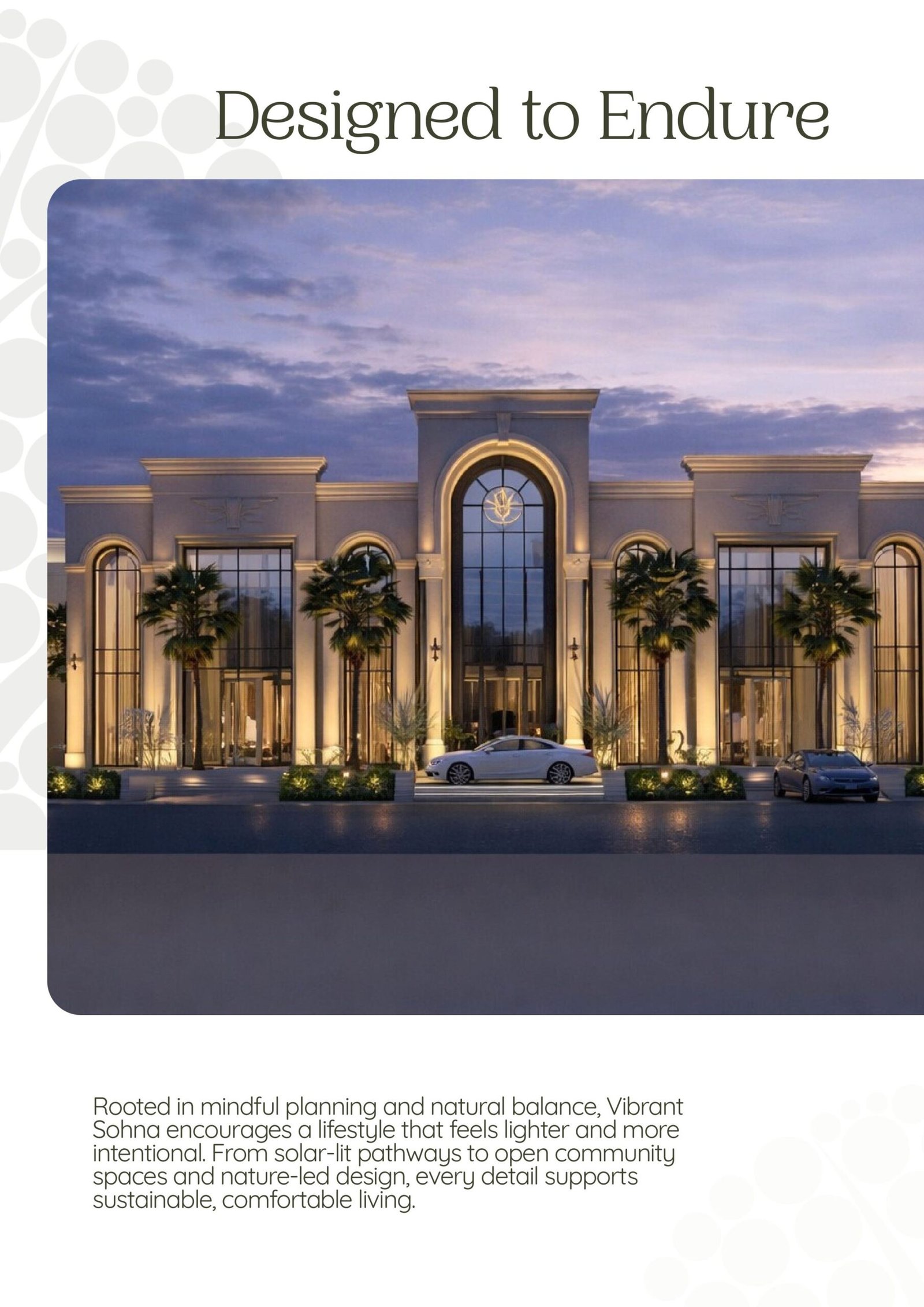 Conscious Living: Rooted in mindful planning, the project features solar-lit pathways and open community spaces.