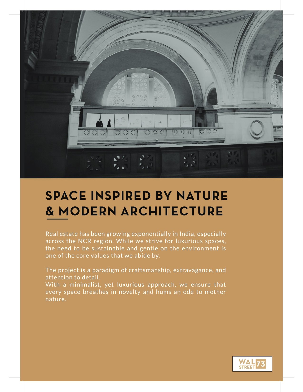A Legacy of Innovation and Luxury WAL STREET 73 is designed for businesses looking to expand in a space that breathes novelty and honors nature. Our project combines a minimalist, luxurious approach with sustainable core values.