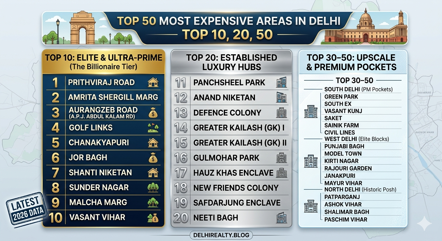 Top 50 Most Expensive Areas in Delhi (2026 Edition)