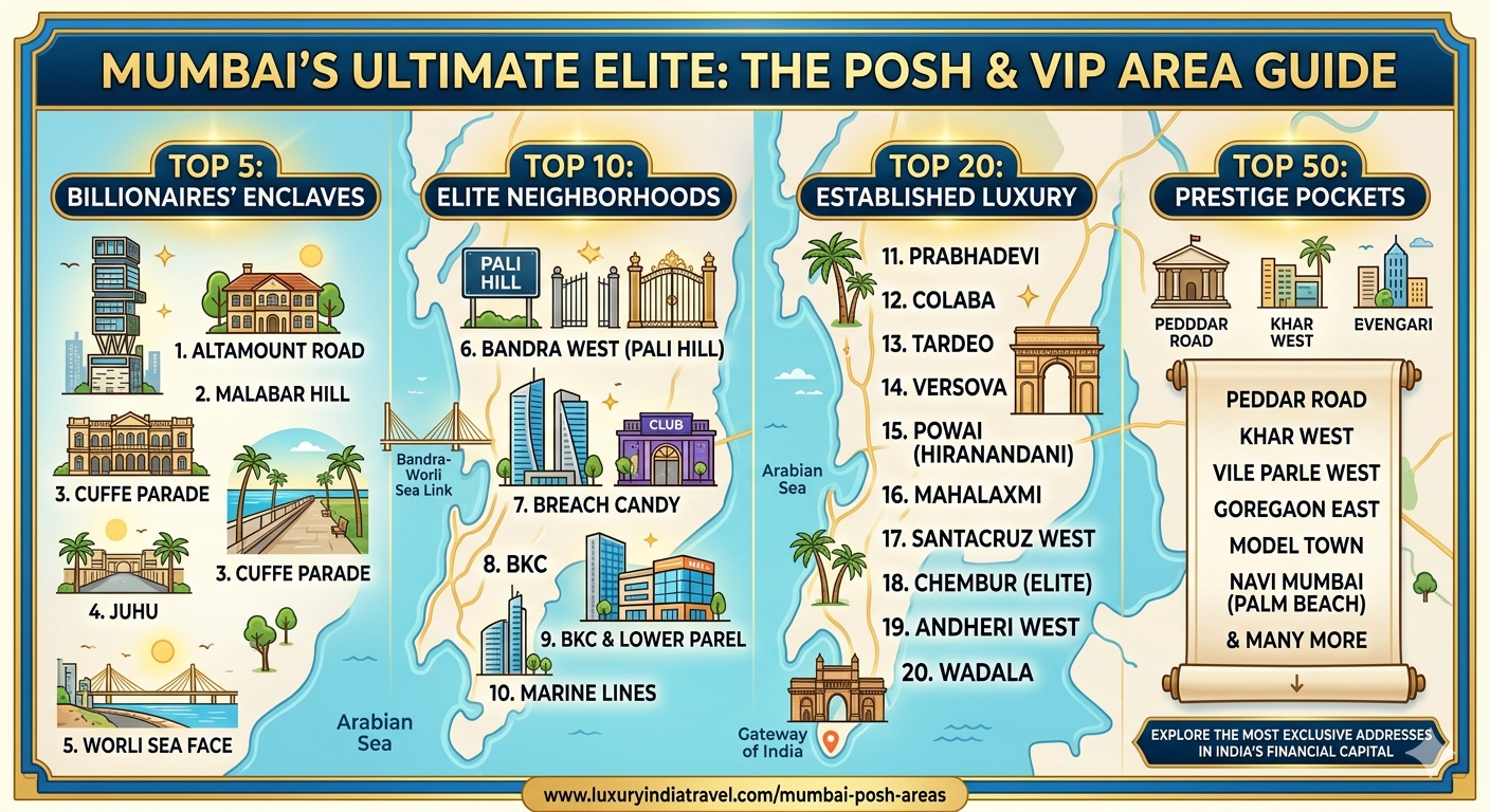 BKC (Bandra Kurla Complex): The new-age VIP hub. With the arrival of luxury residences like Signature Island, it has become the preferred address for top bankers and expats.
