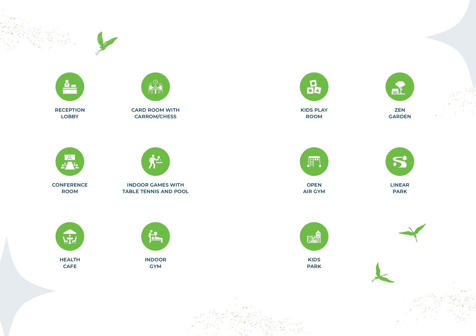 Outdoor: Zen garden, open-air gym, linear park, and dedicated kids’ park
