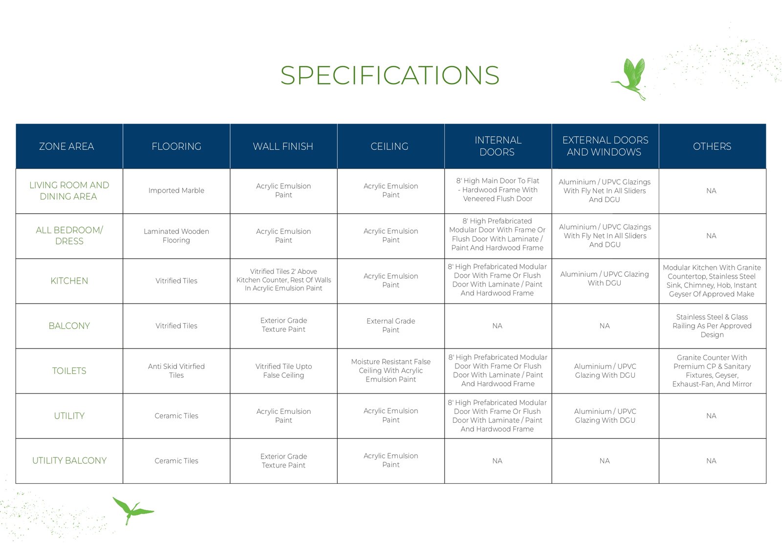 Flooring: Imported marble in living/dining; laminated wooden flooring in bedrooms; anti-skid vitrified tiles in bathrooms and balconies